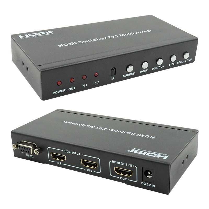 HDMI 2x1 Multi-Viewer พร้อม PIP 2 ใน 1 ออก HDMI Switch
