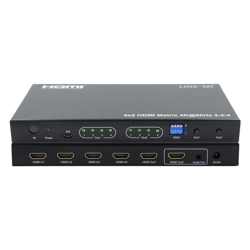 LINK-MI LM-MX13 เป็น HDMI Matrix ที่มีประสิทธิภาพสูง มี 4 ทางเข้า HDMI และ 2 ทางออก สามารถใช้ได้ทุกแหล่ง (เครื่องเล่น Blu-Ray, เครื่องเล่น HD DVD, เครื่องรับดาวเทียม, ระบบเกมส์ เป็นต้น)) จะถูกแสดงบนจอใด ๆ ของจอทั้งสองพร้อมกัน, และสนับสนุน 4K × 2K. ด้วยความกว้างแบนด์ของ 18Gbps และคุณสามารถมั่นใจได้ถึงการกระจาย HDMI ที่ดีที่สุด. มันสนับสนุนปุ่มแพนลและ IR remote control.